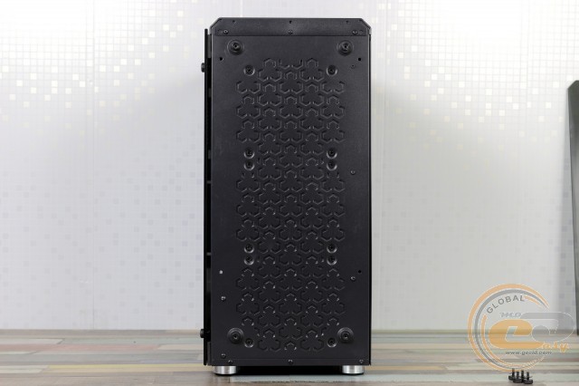 Відкрутивши чотири гвинти, погляду відкривається приємний для ока візерунок. Через нього переглядатиметься світіння встановлених із зворотного боку панелі пропелерів. Акцент відверто робився на дизайн, через що довелося пожертвувати відсіками, пиловим фільтром і хорошою вентиляцією.