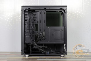 Тильна панель вгорі має посадочне місце для 120-мм вертушки з можливістю невеликого регулювання висоти її розташування. Нижче розміщені сім слотів розширення з заглушками: верхній з них знімається, решту доведеться виламувати. В наявності притискна планка, яка дозволяє зафіксувати всі пристрої в слотах розширення за допомогою пари фігурних гвинтів.