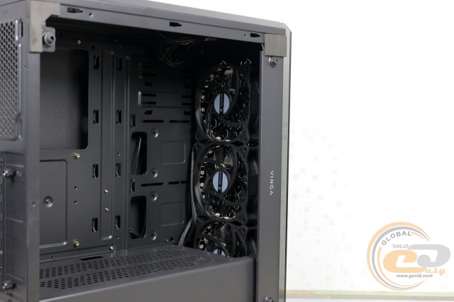 Дану модель корпусу від Vinga, молодої і перспективної компанії, можна вважати відмінним перспективним вибором для створення «дизайнерського» комп'ютера. Це виправдано застосуванням фронтальної та бокової панелей з загартованого скла, а також наявністю трьох попередньо встановлених вертушок з LED-підсвіткою.