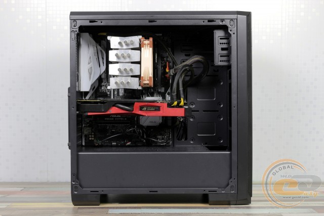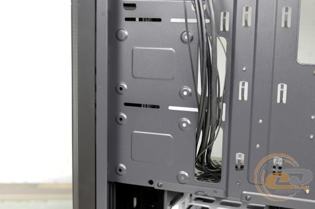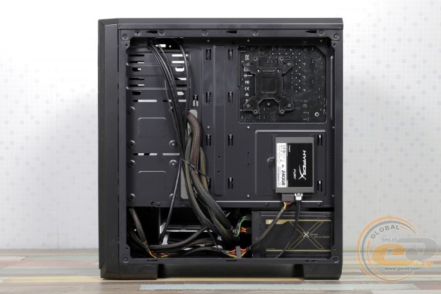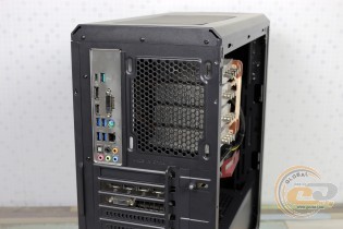 Пофарбована в чорний колір тильна панель радує можливістю встановлення 120-мм пропелера з невеликим регулюванням по висоті. Нижче знаходяться сім слотів розширення, фіксацію пристроїв у яких допомагає виконати зовнішня притискна планка. Блок живлення притулиться на дні корпуса.