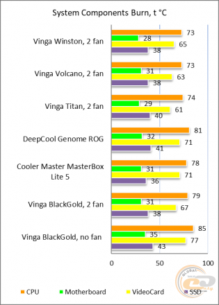 - хороші температурні показники компонентів при встановленні пари вентиляторів.