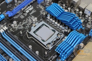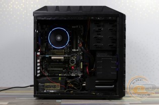 Якщо розмістити кулер так, як показано на фото, тоді сумісність із пам'яттю вас порадує. У всі слоти при бажанні можна встановити навіть оверклокерські модулі. Хоча сам радіатор розмістився впритул до околосокетного охолоджувача: якби вони трохи вищі, довелося б думати про їх демонтаж. Також при накритті охолоджувачем зони портів введення-виведення буде потрібно зняти тильний корпусний пропелер.