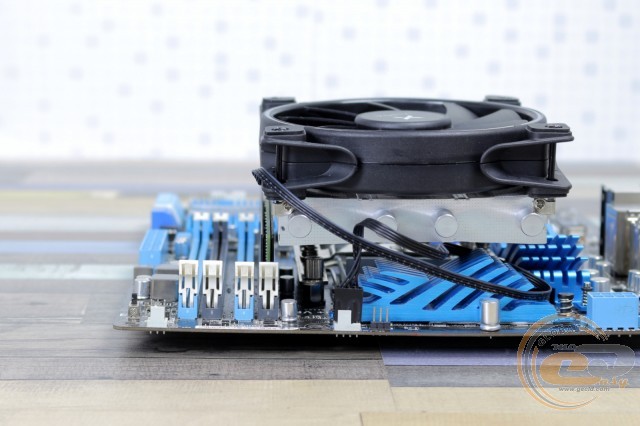 На практиці тандем з радіатора із чотирма тепловими трубками і 120-мм вентилятора дозволяє насолоджуватися тишею при використанні вельми ненажерливих процесорів або побалуватися з розгоном, але вже без комфортного акустичного фону і з не настільки високими показниками, як це було б у випадку з баштовими рішеннями. Плата за компактність, нічого не поробиш.