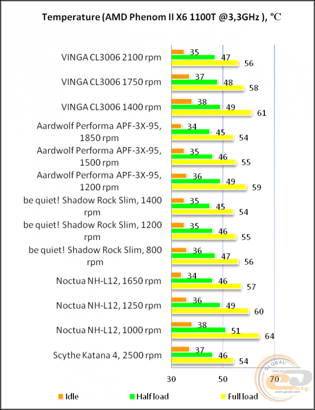 Беручи до уваги все перераховане вище в парі з оригінальним форм-фактором, при ціні $31 Vinga CL3006 виглядає ласим шматочком. Звичайно, завжди знайдуться більш продуктивні рішення, але і коштують вони дорожче. Тому при збірці компактної системи протестований кулер висотою 74 мм має всі шанси на успіх. Але варто звернути увагу на радіатори блоку VRM материнської плати: з-за занадто великих їх розмірів або екстравагантної форми можуть виникнути проблеми із сумісністю. Тому іноді слід шукати плату скромніше.