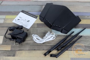Усередині всі компоненти укладені у форму зі спіненого поліпропілену, тому за збереження під час транспортування турбуватися не варто. Комплект постачання містить керівництво користувача, зовнішній блок живлення S12B23-120A100-04 (вхід: 100 – 240 В при 50/60 Гц, вихід: 1,2 В при 1 А), три знімні антени й кабель Ethernet.