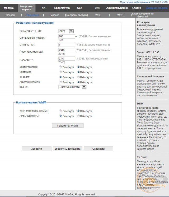 Після початкової конфігурації ми потрапляємо в меню з ширшими налаштуваннями. У ньому можна переглянути поточний статус LAN- і WAN-підключень, ввімкнути або вимкнути підтримку протоколу IPv6, активувати або деактивувати функцію Tx Burst (той же підсилювач потужності передавача бездротового сигналу, лише в програмному вигляді), задати параметри безпеки, налаштувати роботу технології Green AP, реалізувати фільтрацію портів, IP або MAC-адрес, вибрати мову інтерфейсу або навіть завантажити файл з готовими налаштуваннями і багато іншого.