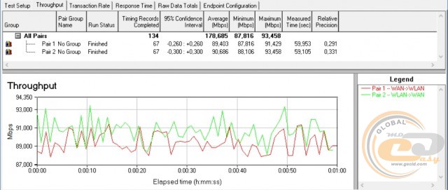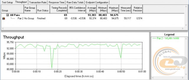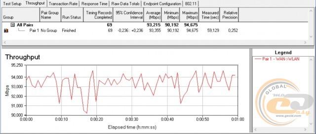 Середня пропускна спроможність при передачі інформації в обох напрямках склала майже 179 Мбіт/с, а максимальна – 93 Мбіт/с. Усе списується на обмеження портів Fast Ethernet з пропускною спроможністю до 100 Мбіт/с. Свого часу Vinga WR-N300 Long Range видала 169 і 95 Мбіт/с. Тобто в ідеальних умовах тестування відмінності між апаратною платформою не надто впливають на результати.