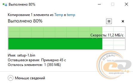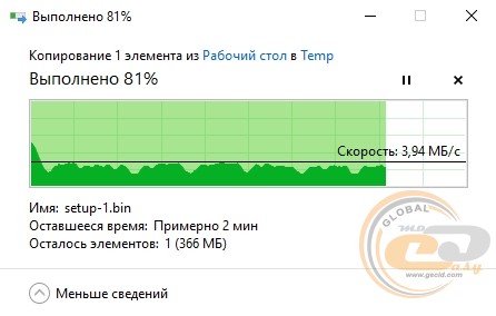 Швидкість читання інформації перебувала на рівні 11,2 МБ/с, а запису – 3,94 МБ/с. Це звичні показники для інтерфейсу USB 2.0, які за необхідності дозволять організувати мережевий принтер або сховище даних.