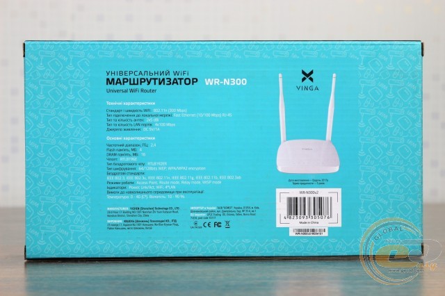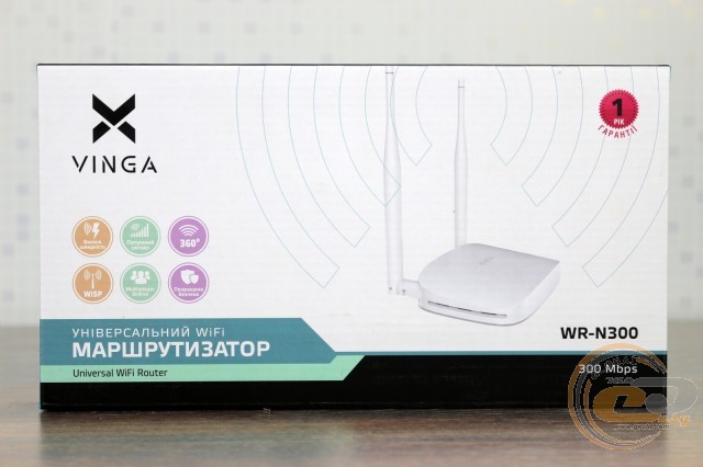 Vinga WR-N300v2 - бездротовий маршрутизатор який включає в себе Wi-Fi маршрутизатор, точку доступу, підсилювач сигналу і дротовий маршрутизатор. Підтримка стандарту 802.11 n зі швидкістю передачі до 300 Мбіт/с на далекі дистанції і сумісний з пристроями 802.11 a/b/g на робочій частоті 2.4 ГГц.