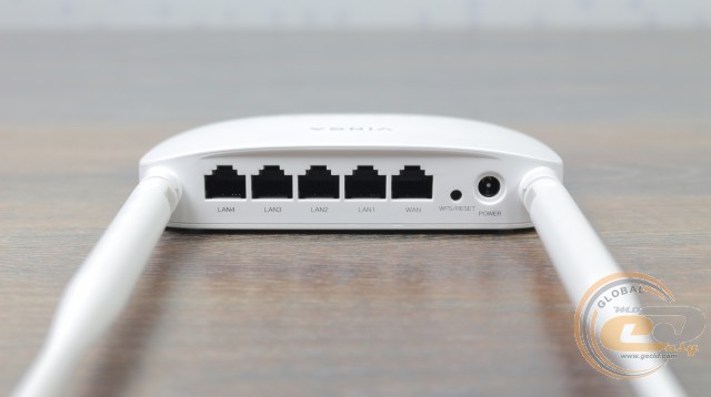 Як і у випадку з першою версією, усі ключові елементи сконцентровані на тильній панелі. Їх кількість і розташування не змінилися: маємо чотири LAN- і один WAN-порт у версії Fast Ethernet (до 100 Мбіт/с), поєднану кнопку «WPS/RESET» і роз'єм для підключення блоку живлення. Краями знаходяться дві незнімні антени.