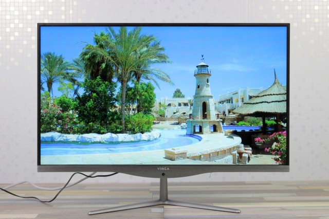 У Vinga AlO BUSINESS використовується IPS-панель з роздільною здатністю 1920 × 1080 і глянцевим покриттям. На виході отримуємо приємну передачу кольору, трохи з холодними відтінками, максимальні кути огляду і хорошу контрастність. Яскравість змінюється в діапазоні від 29 до 218 кд/м2. Це дозволить комфортно працювати в умовах приміщенні вночі або вдень.