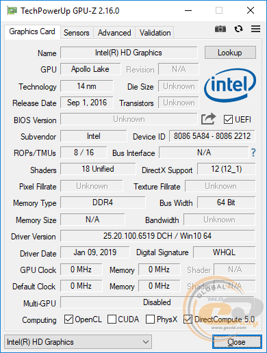 Intel HD Graphics 505 (18 x 200 – 750 МГц) |