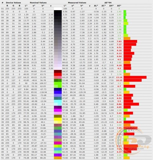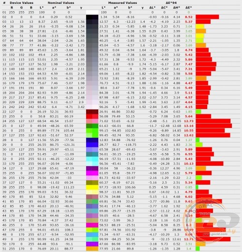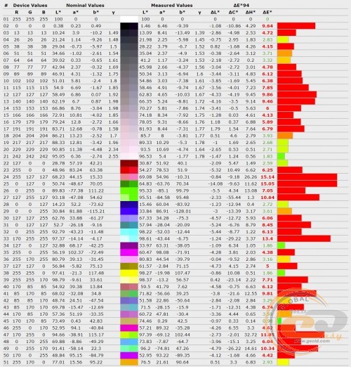 У дисплеї закладені чотири колірні профілі: «Динамічний», «Користувацький», «Стандартний» і «Помірний». Для зручності ми зібрали всі їх параметри в єдиній таблиці: