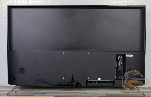 Зате тильна сторона помітно змінилася. Суб'єктивно вона стала привабливішою, хоча як і раніше доволі мазка. У центральній області можна помітити отвори для кронштейна VESA (400 x 200 мм), тому за бажання можна здійснити настінний монтаж телевізора або прикріпити до нього міні-ПК.